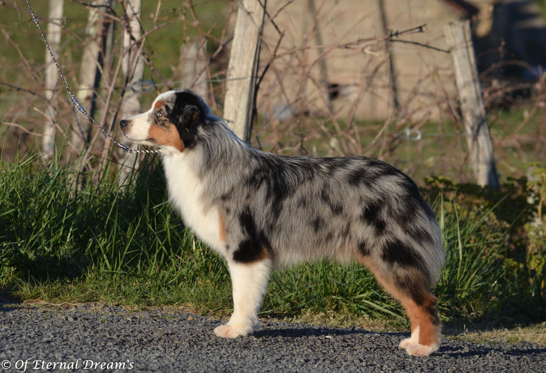 Date de naissance : 25 juin 2020 | Couleur : Bleu Merle - Porteur rouge
